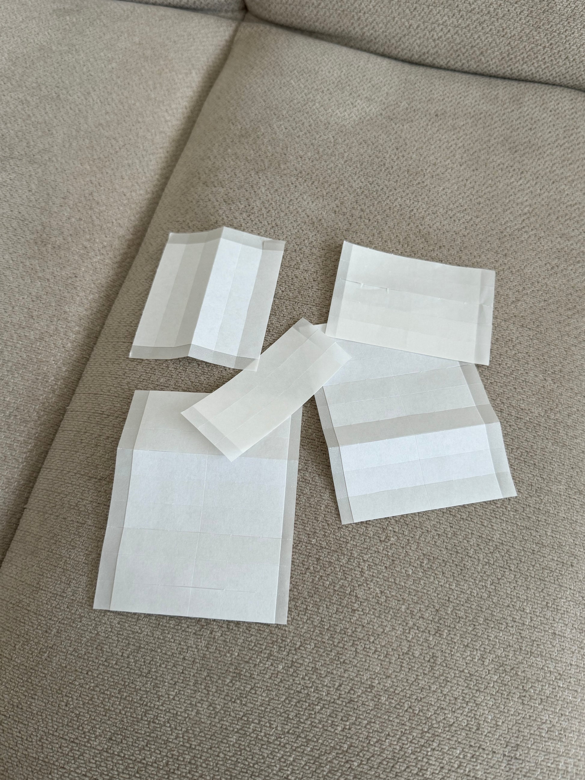 Each packet comes with a dozen single tapes that are peeled and placed. Please email us if you are confused.